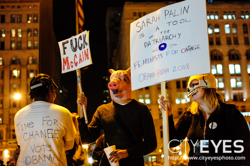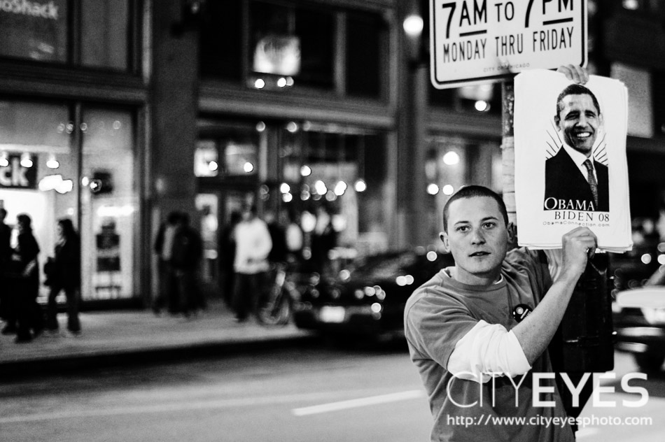 Almost immediately after getting off of the train, we were bombarded by various people selling all sorts of Obama merchandise. From shirts, to mugs, to hats, to posters, to freaking paper fans. No idea who would be interested in a paper fan in 50 degree F weather, but whatever. This particular guy was standing on a street corner selling Obama/Biden posters.