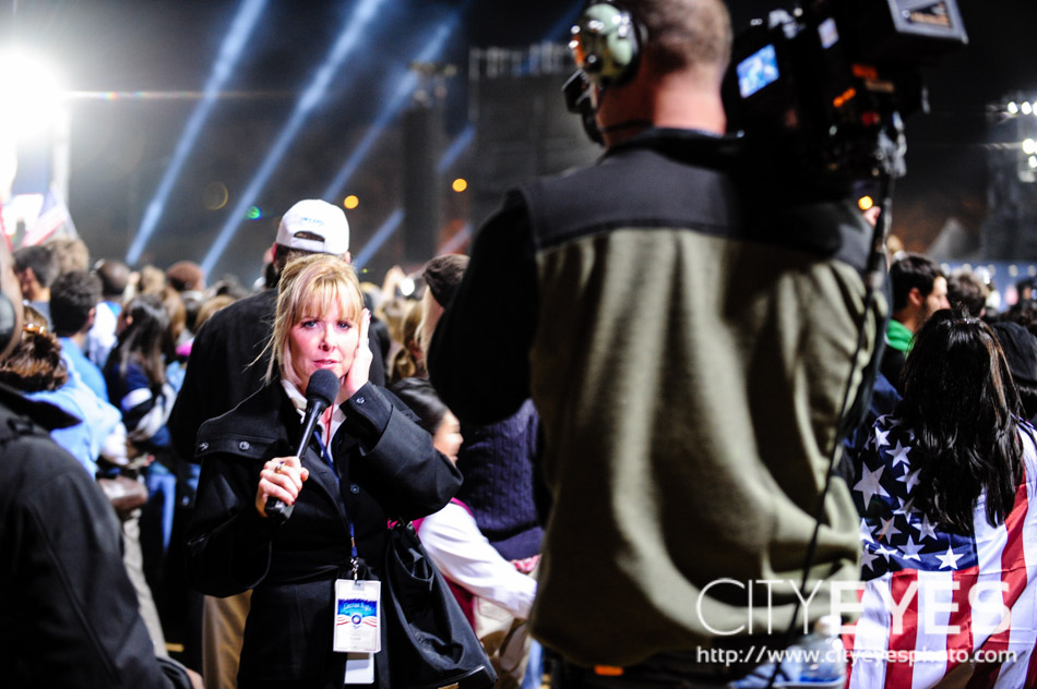 The media was there, of course. This woman is apparently from CBS. The price of media passes were insane ($900+ per pass), so unfortunately only the bigwigs had access to the cordoned off areas.