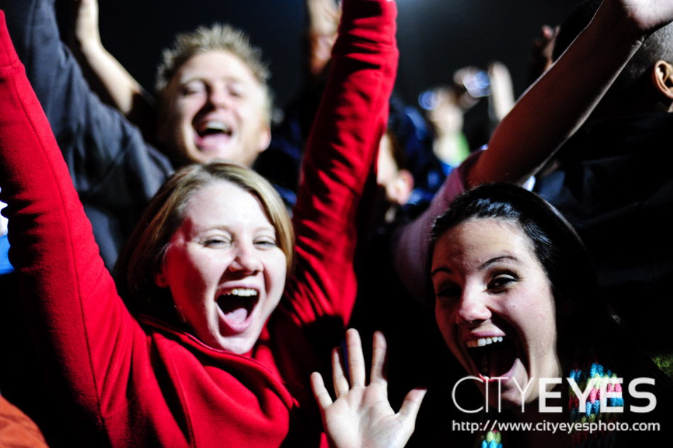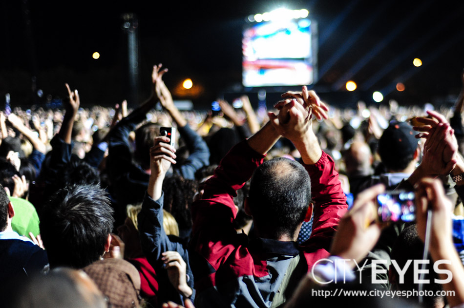 We made our way in, finally. It seemed almost staged. The entrance was on a raised area of the field overlooking the whole place. A sea of people stood before us, flags waving in the distance and hands raised. It was ridiculous.