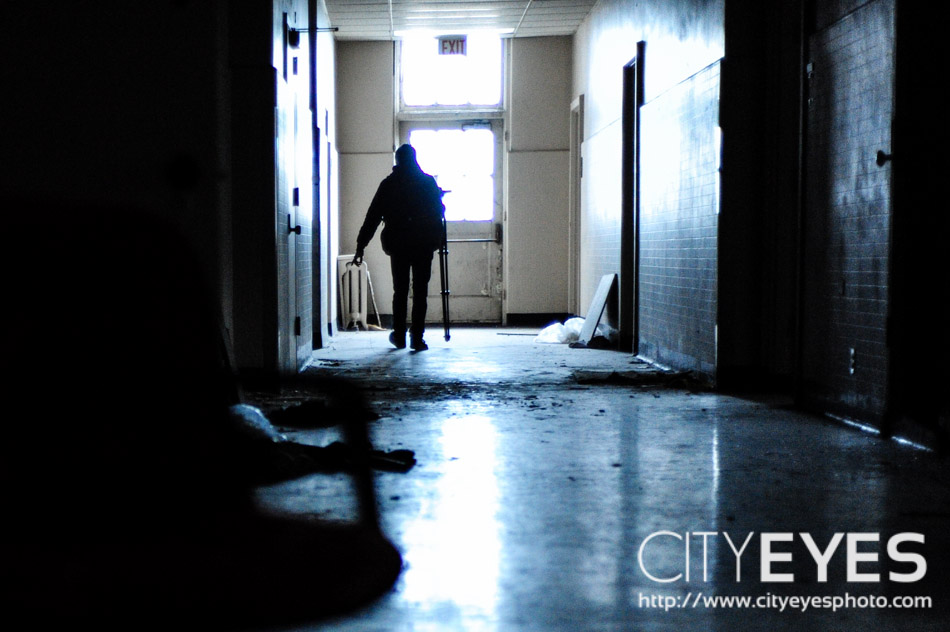 The nurse’s residency was one of the places that we hit. The bottom floor actually had a boarded up ballroom with wood floors, chandeliers, a fireplace – the works. There was even wood left in the fireplace from the last time that they had extinguished the flame before they abandoned the building. We walked up a few floors to find room after room.