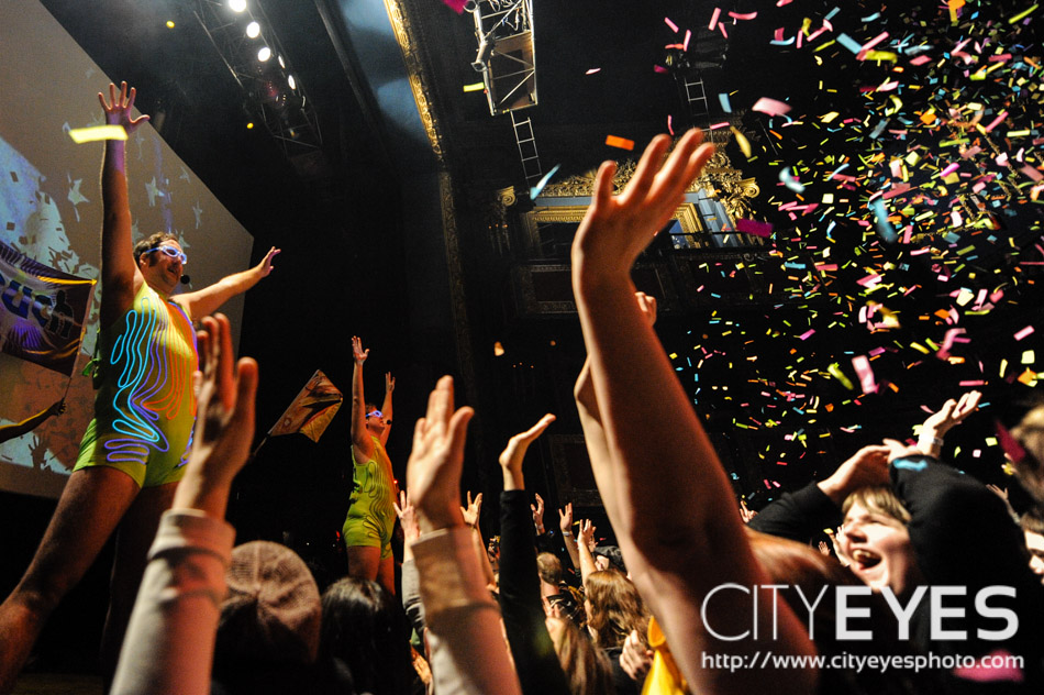 The main event began. A melodic techno-tune fills the air involving the word “diarrhea”, and finally, Tim and Eric burst onto stage in their patented skin-tight costumes. Yellow this time around. The place went wild.