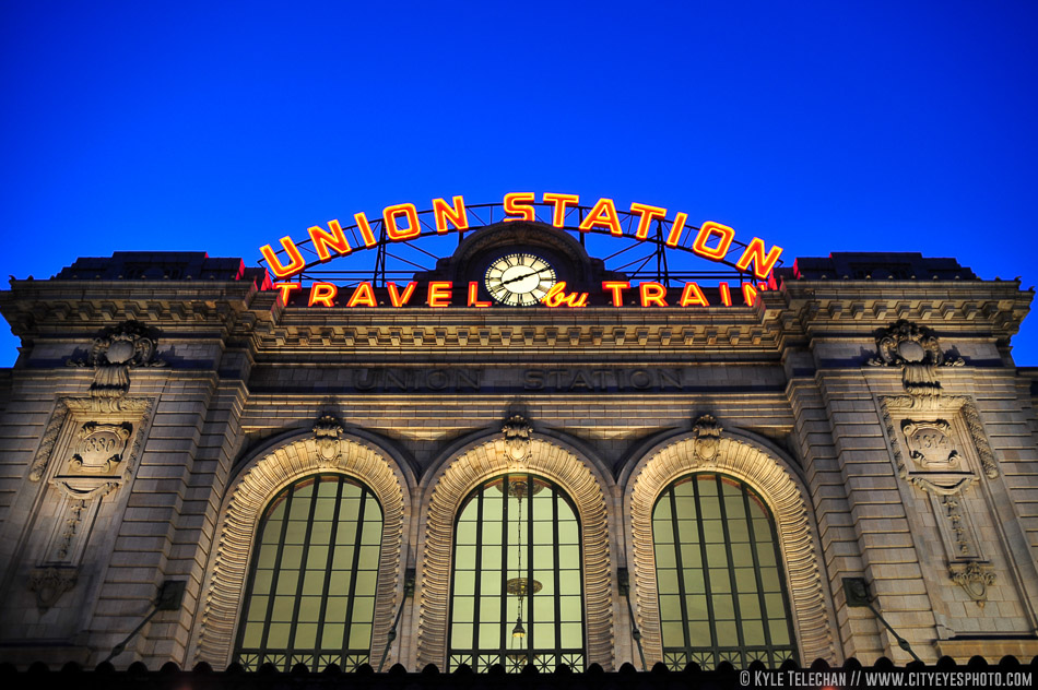 Union Station in Colorado. The almost-night sky turned out so blue in this shot.